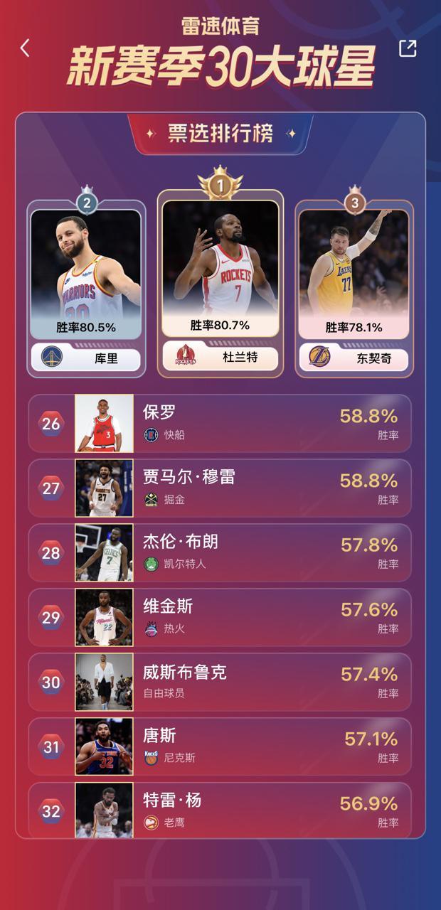 雷速体育10月14日讯 雷速NBA新赛季30大球星活动正在如火如荼地进行中。