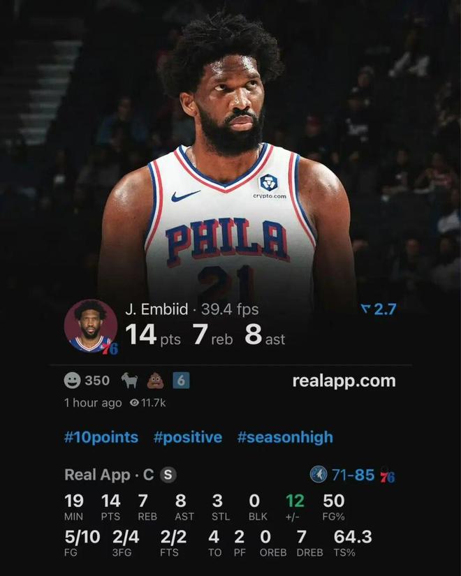 恩比德时隔大半年,复出的首场比赛