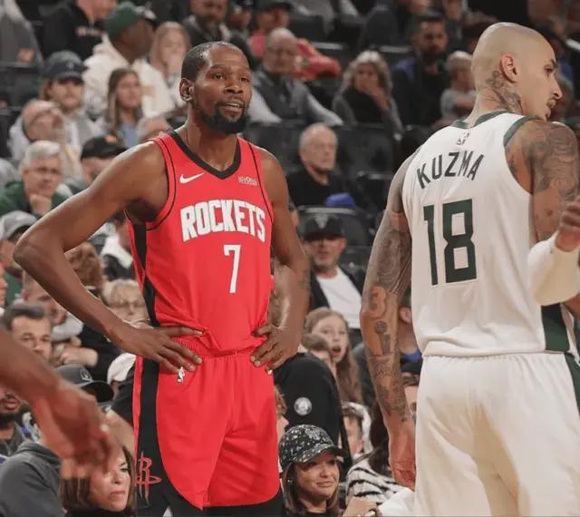 这就是我们说的,范乔丹不在,火箭阵地战是没有了,就靠申京一手低位单打发牌,或者直接持球碾进去,实在没办法就杜兰特立棍解决问题。其余战术都是提速打转换,而雄鹿的转换不比火箭差。也幸好谢泼德这几场爆发打出来,在火箭危难时刻,谢泼德一个人带队打出10-0高潮止血。可惜火箭之后又是3次失误,半场仍然落后11分。
