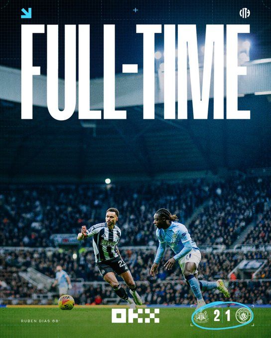 北京时间11月23日01:30,英超联赛第12轮,曼城做客圣詹姆斯公园球场挑战纽卡斯尔联。上半场双方均无建树,两队攻击手相继错失绝佳破门良机,多纳鲁马作出关键扑救。曼城半场0-0战平纽卡。下半场,巴恩斯梅开二度,鲁本-迪亚斯打进一球。最终曼城1-2不敌纽卡斯尔联,各项赛事4连胜势头遭终结,本场战罢,曼城排名积分榜第三,暂落后榜首4分。